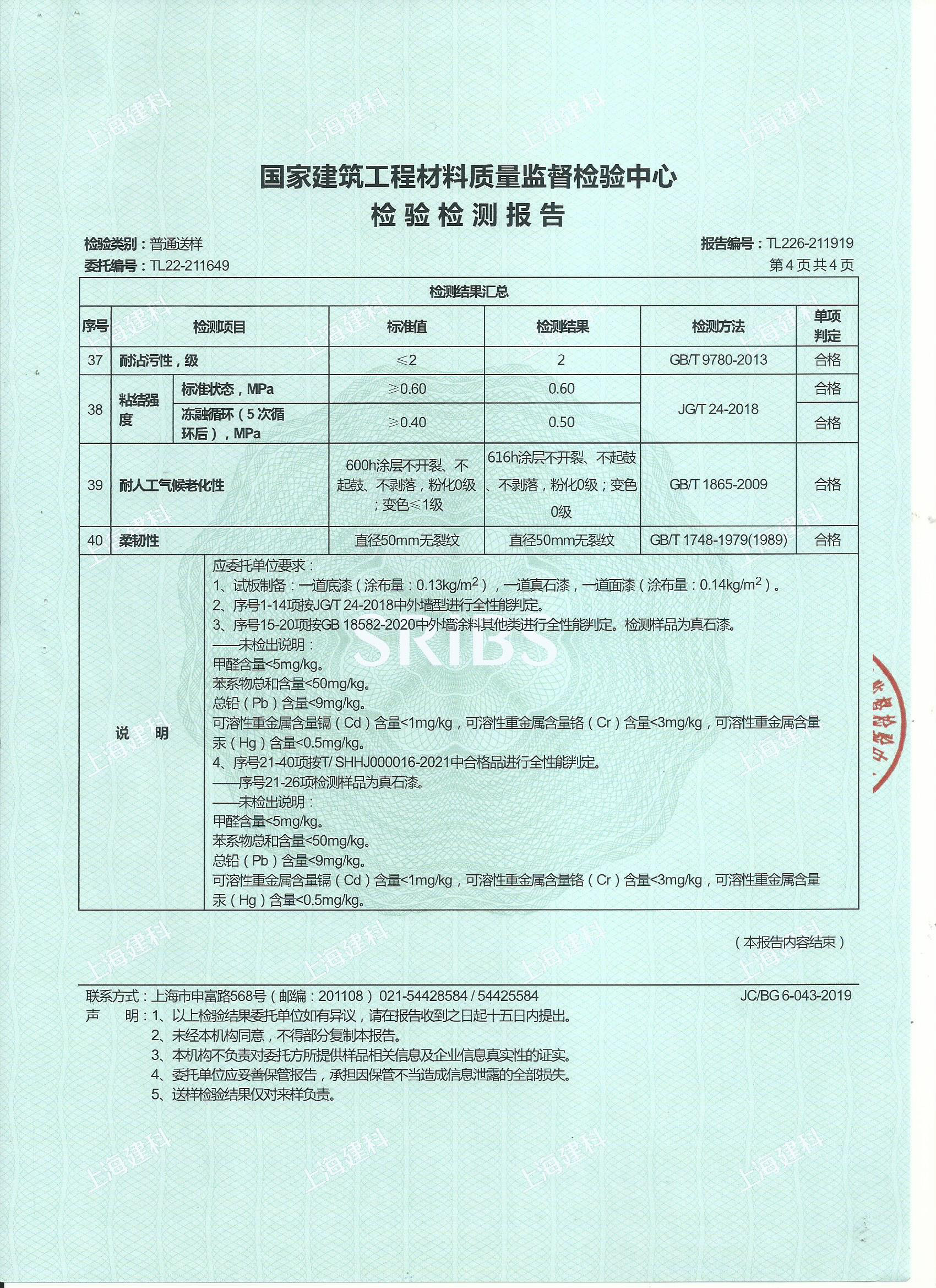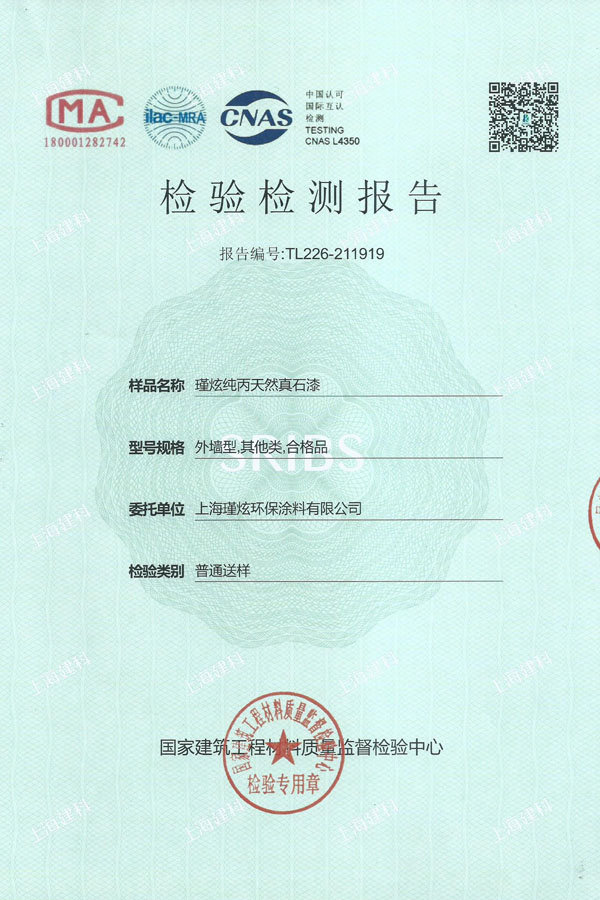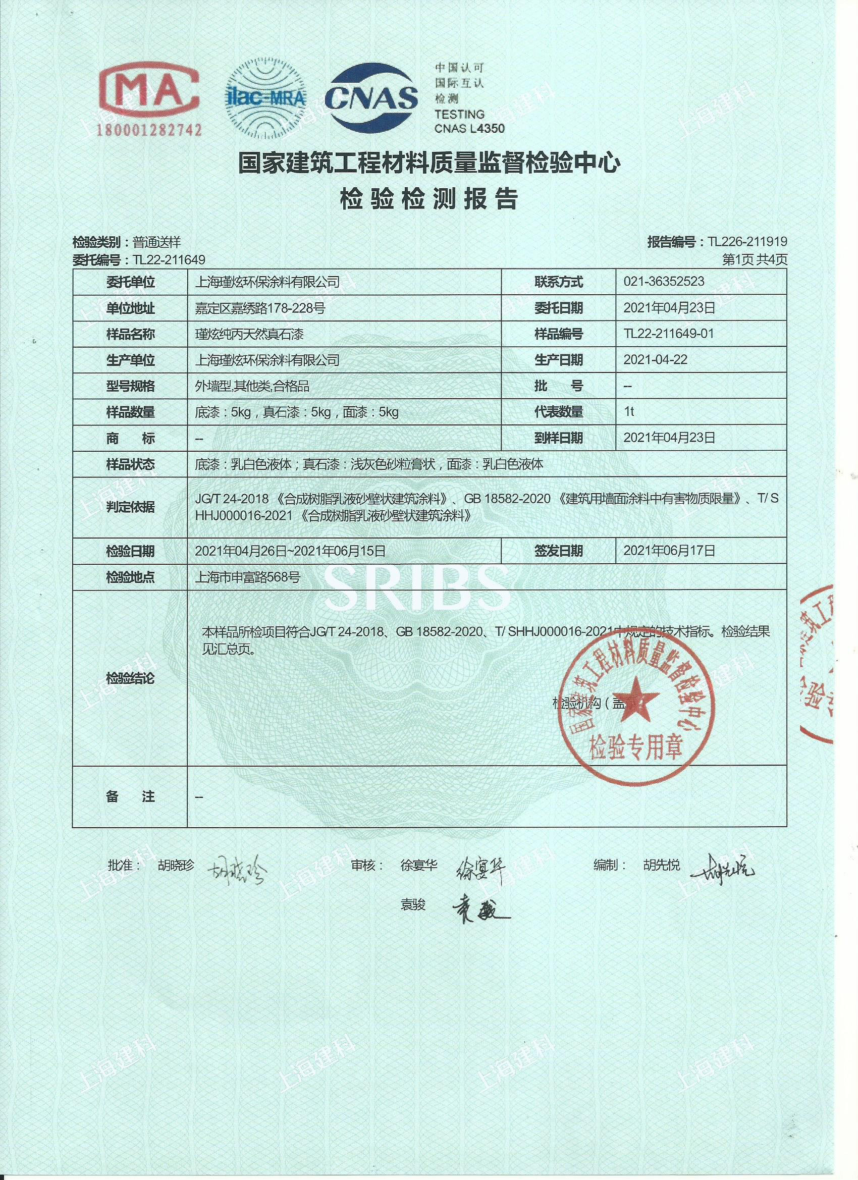 上海品牌瑾炫真石漆经过国家正规检测单位检测