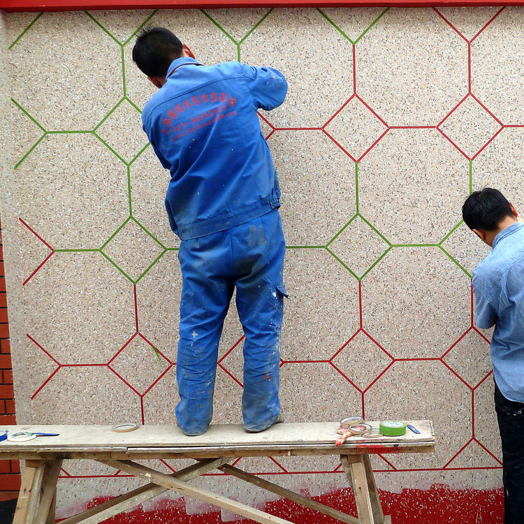 外墙行人建议使用外墙细抹面砂浆,并在砂浆干燥后,需铲掉掉尖角和批刀痕迹。