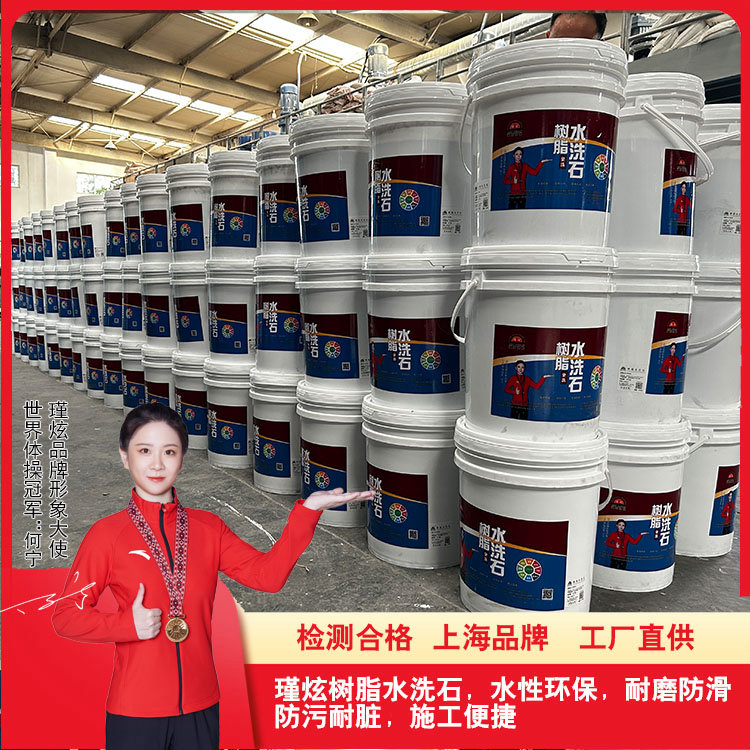 - 质感表现:树脂乳液透明度高,能较好呈现骨料的天然色泽与纹理,且可通过添加色浆精准调色,实现 “骨料本色 + 树脂底色” 的双层视觉效果,可适配仿大理石、仿玉石等精致装饰风格,满足高端装饰需求。